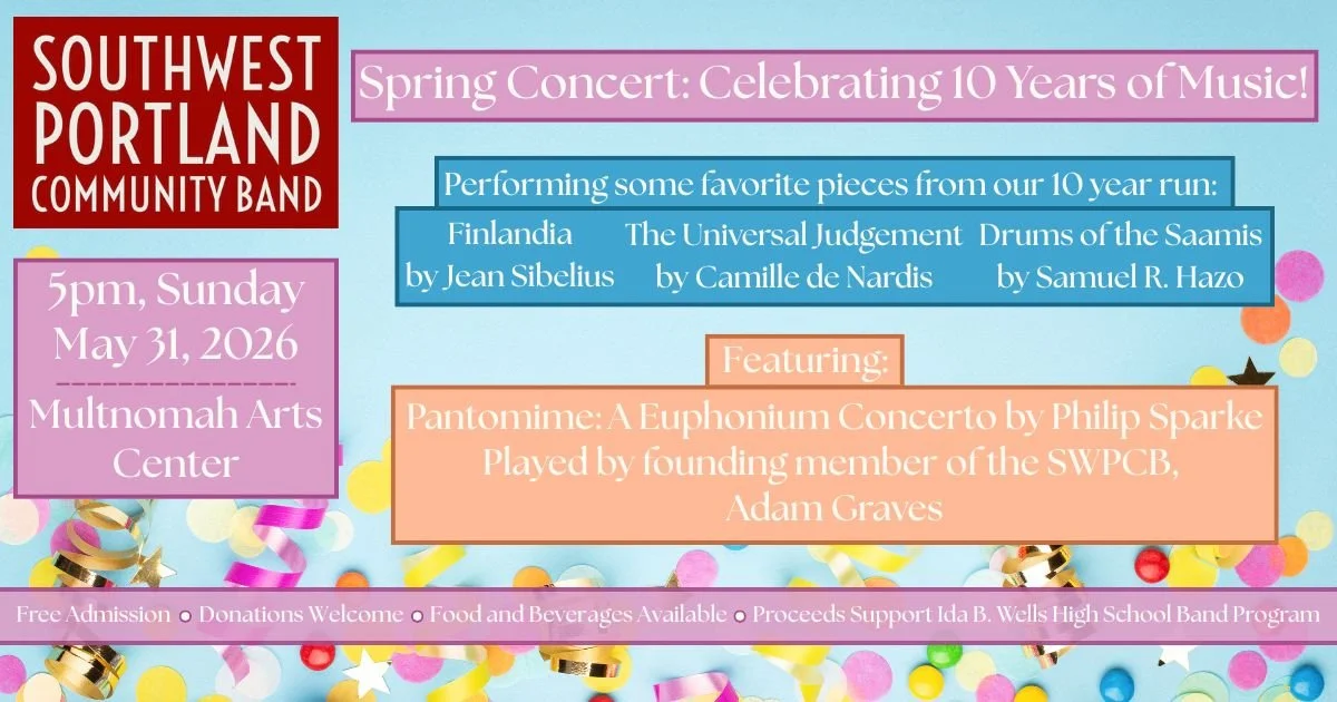 The band rehearses at Ida B. Wells High School in the Hillsdale neighborhood of Southwest Portland. Concert proceeds benefit the Ida B. Wells High School Band Program.